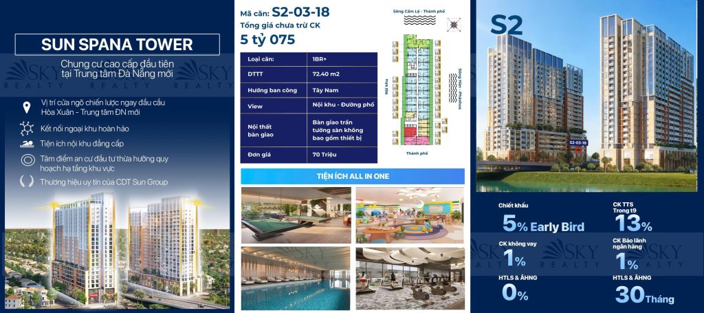 Tags 1 phòng ngủ +, căn hộ hòa xuân, giá từ 3-4 tỷ, Sun Group, tầng trung, View thành phố