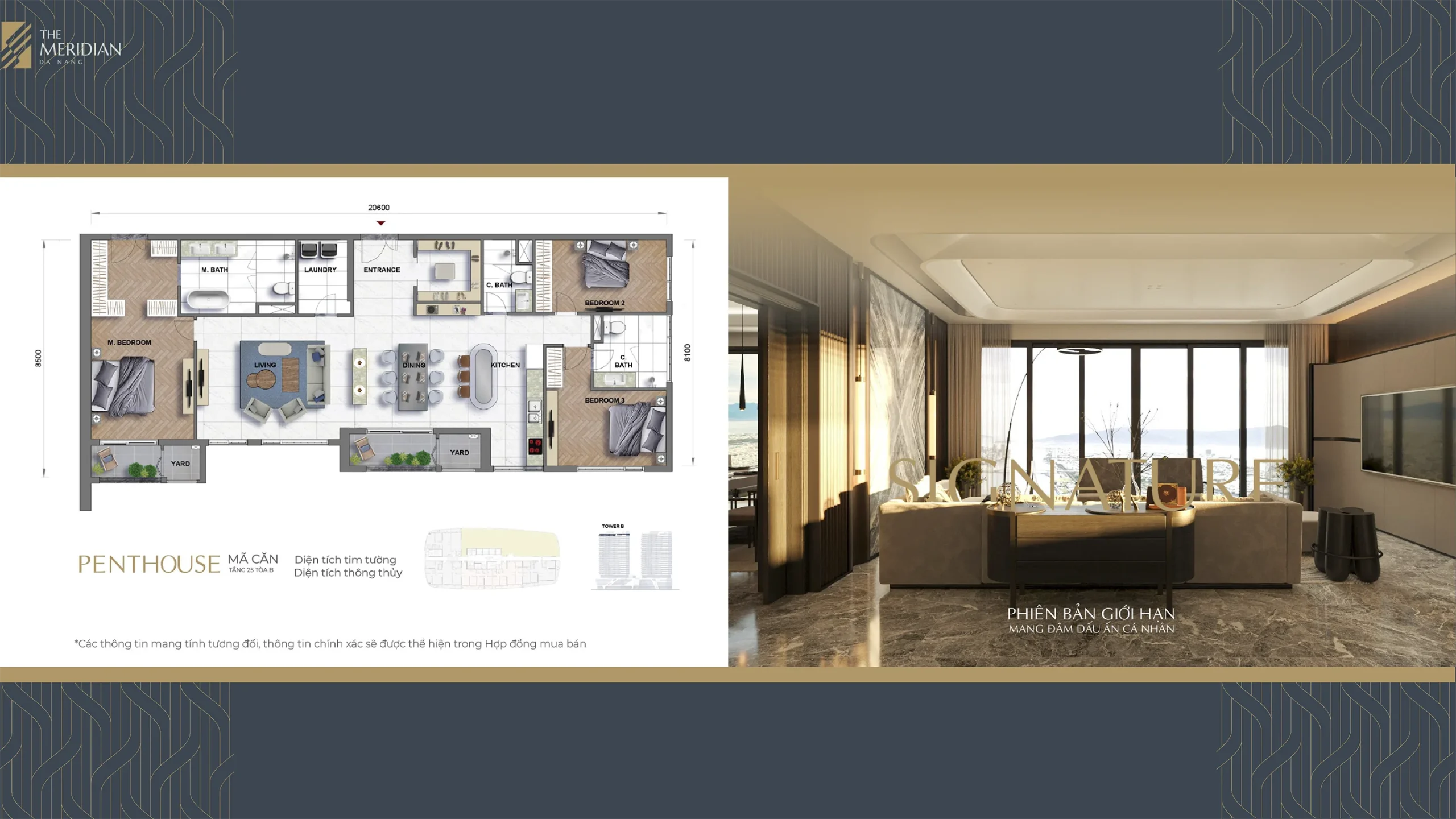 Tầng 25 là nơi bố trí các căn Penthouse sang trọng với không gian đẳng cấp. Trên cùng là không gian thư giãn đỉnh cao với hồ bơi vô cực (Infinity Pool), Sky Bar & Lounge, vườn trên mái (Sky Garden), sân BBQ và khu ngắm cảnh toàn thành phố, mang đến trải nghiệm sống “trong mơ” bên dòng sông Hàn.