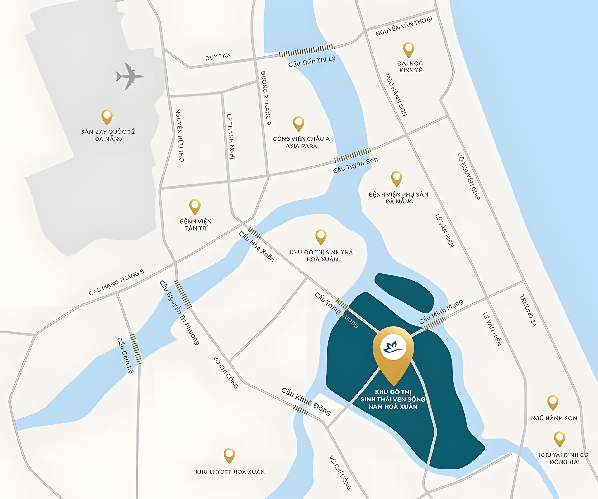 Giáp sông Đô Toa (nhánh cuối của sông Hàn), kết nối trực tiếp về trung tâm TP. Đà Nẵng, thuận lợi di chuyển và giao thương.