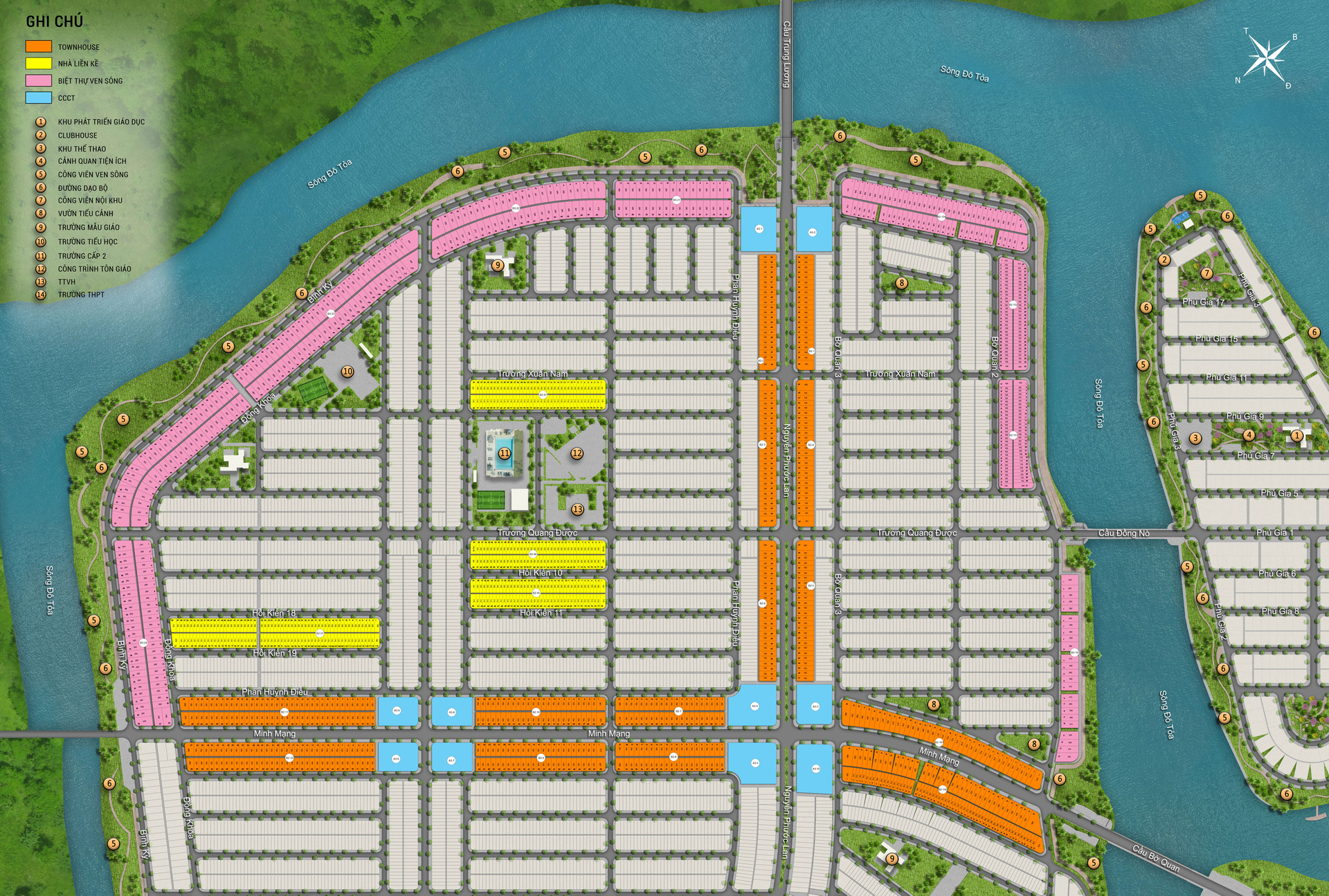 – Loại hình: Nhà phố thương mại, Nhà phố view sông, Liền kề view sông, Biệt thự view sông Căn hộ cao cấp.